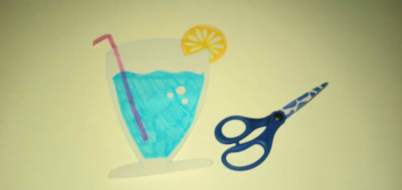 Teken met een roze stift (of een ander leuk kleurtje) een rietje in het glas. Teken aan de andere kant een citroenschijfje op het glas. Je kunt het glas zelf natuurlijk ook nog versieren.